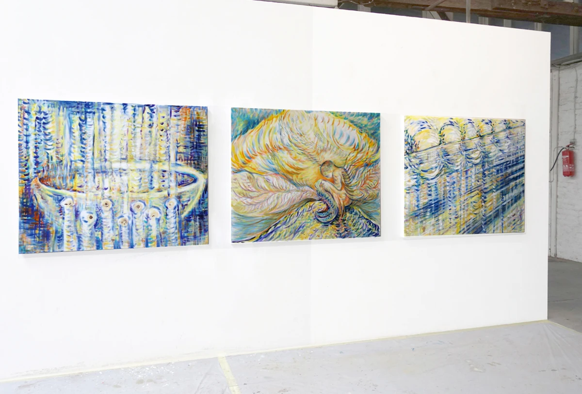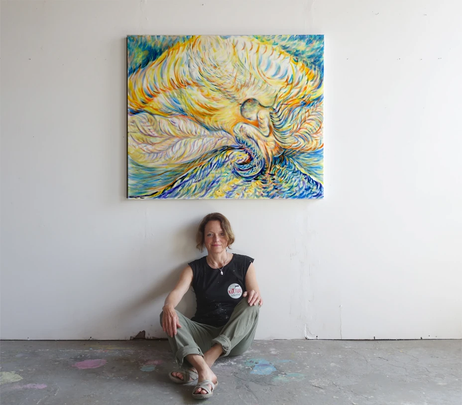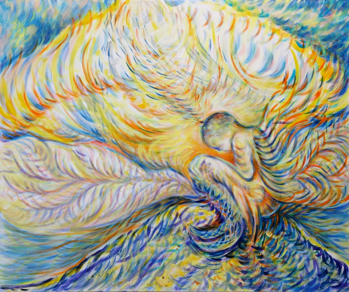 Ölfarbe, irisierende Acrylfarbe, Walnuss-Sud auf Leinwand 100 x 120 cm, 2022