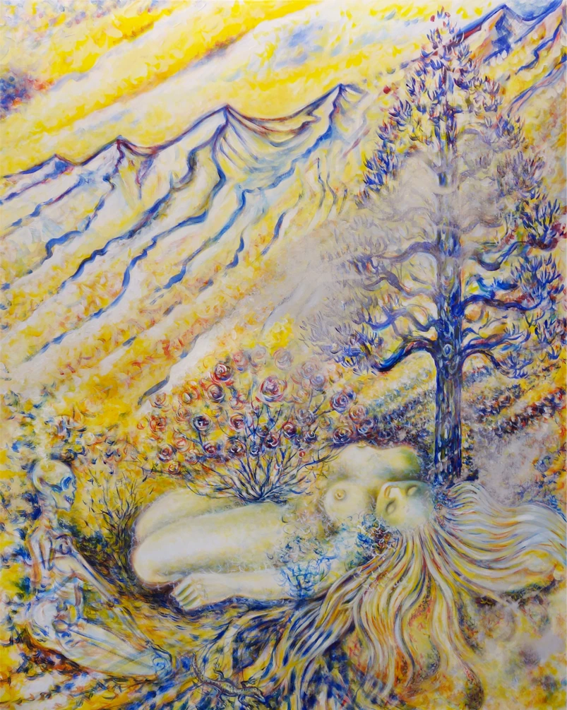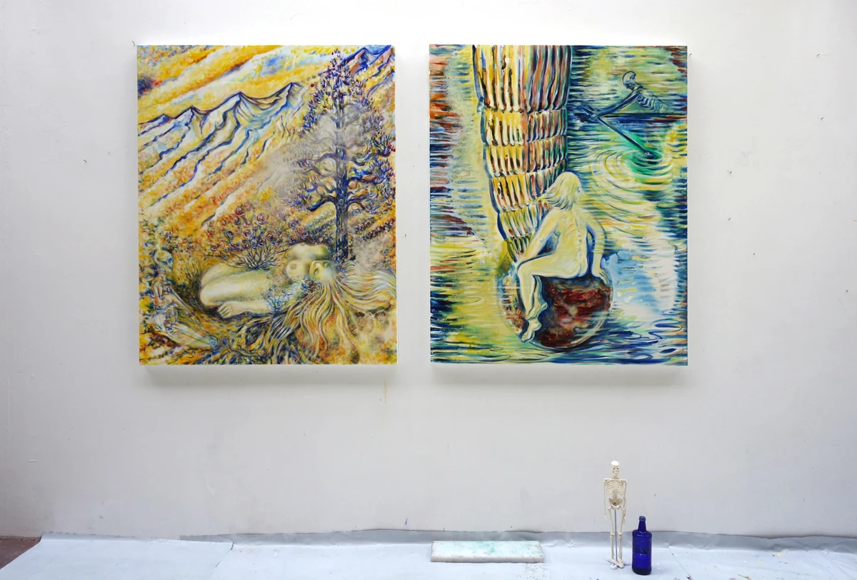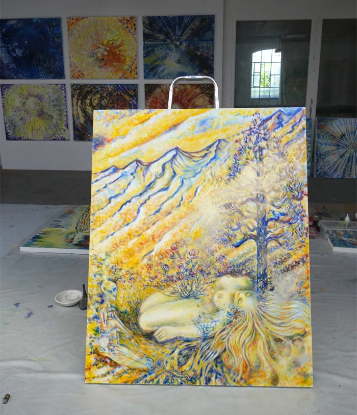 Ölfarbe, irisierende Goldfarbe auf Leinwand 150 x 120 cm, 2023