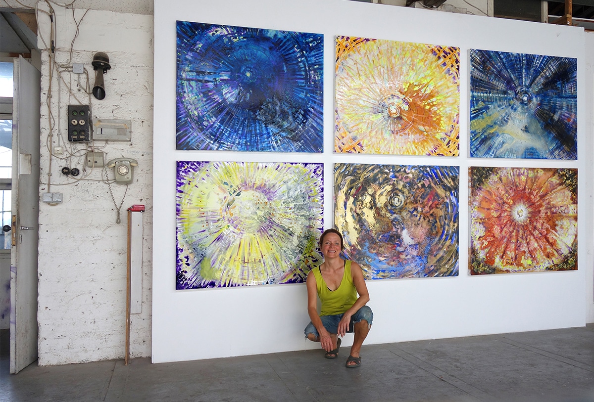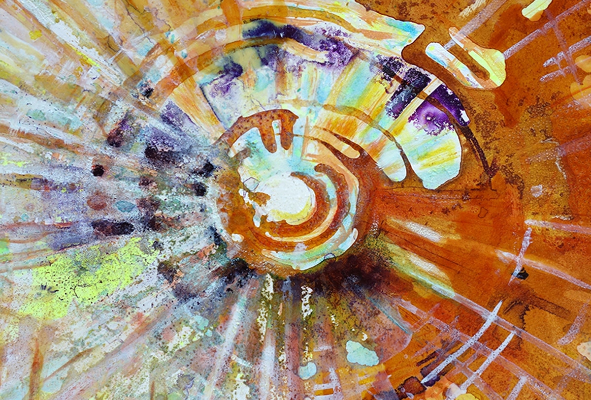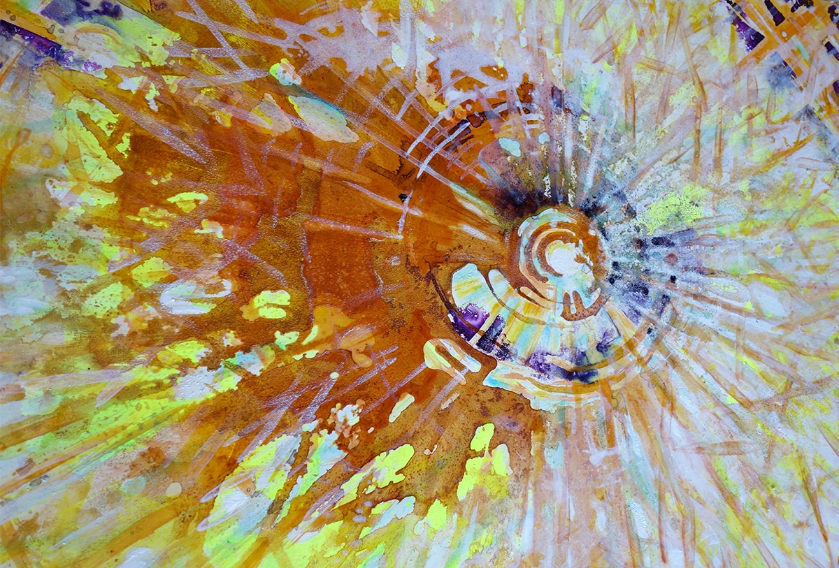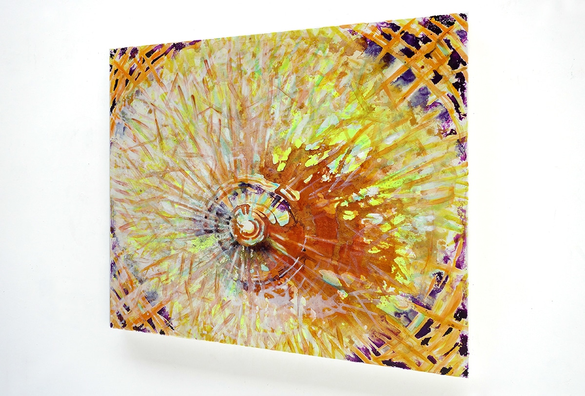 Das, was als SEELENFELD bezeichnet wird, ist für das Auge unsichtbar – doch in meinen Malereien zeigt es sich: sich ausdehnende Zentren, Kreise, rotierende Strahlen und vibrierende Lichtpunkte, die von der Seele, also einem Zentrum ausgehen. Ich nenne sie INNERES LICHT oder INNERE SONNEN. Sie sind nicht dekorativ, sondern Ausdruck einer zugrunde liegenden universellen Ordnung.