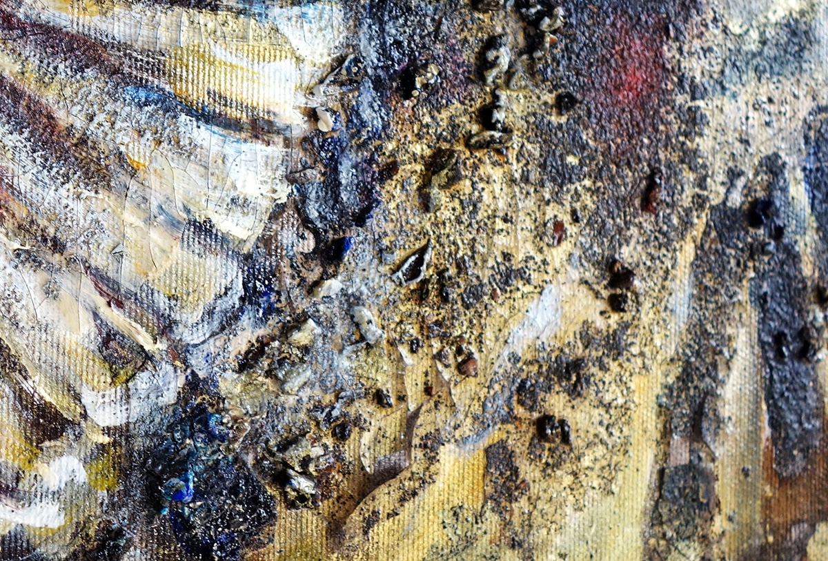 Original-Ölbild 50 x 60 cm, 2023, Ölfarbe, irisierende Acrylfarbe, Walnussschalen zerkleinert, Schellack auf Leinwand