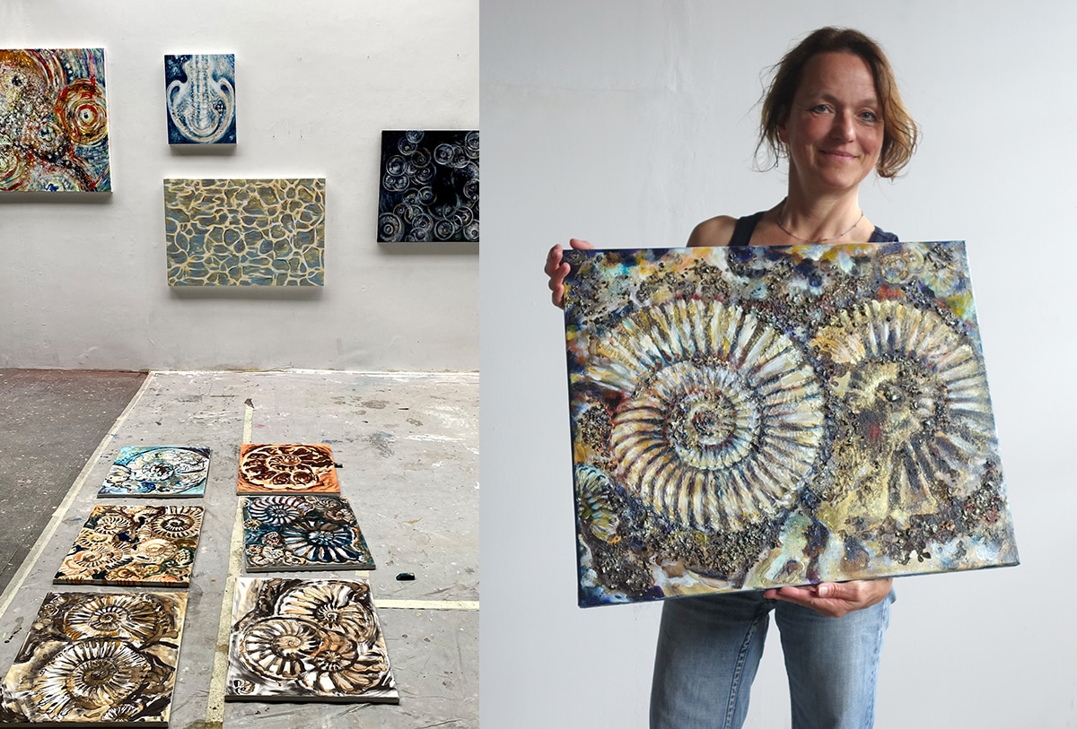 Dieses Werk ist auch als Kunstdruck erhältlich: https://barbarameisner.de/produkt/doppelammonit/. Alle Kunstdrucke sind gedruckt auf archivfestem Büttenpapier mit pigmentierten Tinten, rückseitig handsigniert und datiert mit Künstlerstempel.