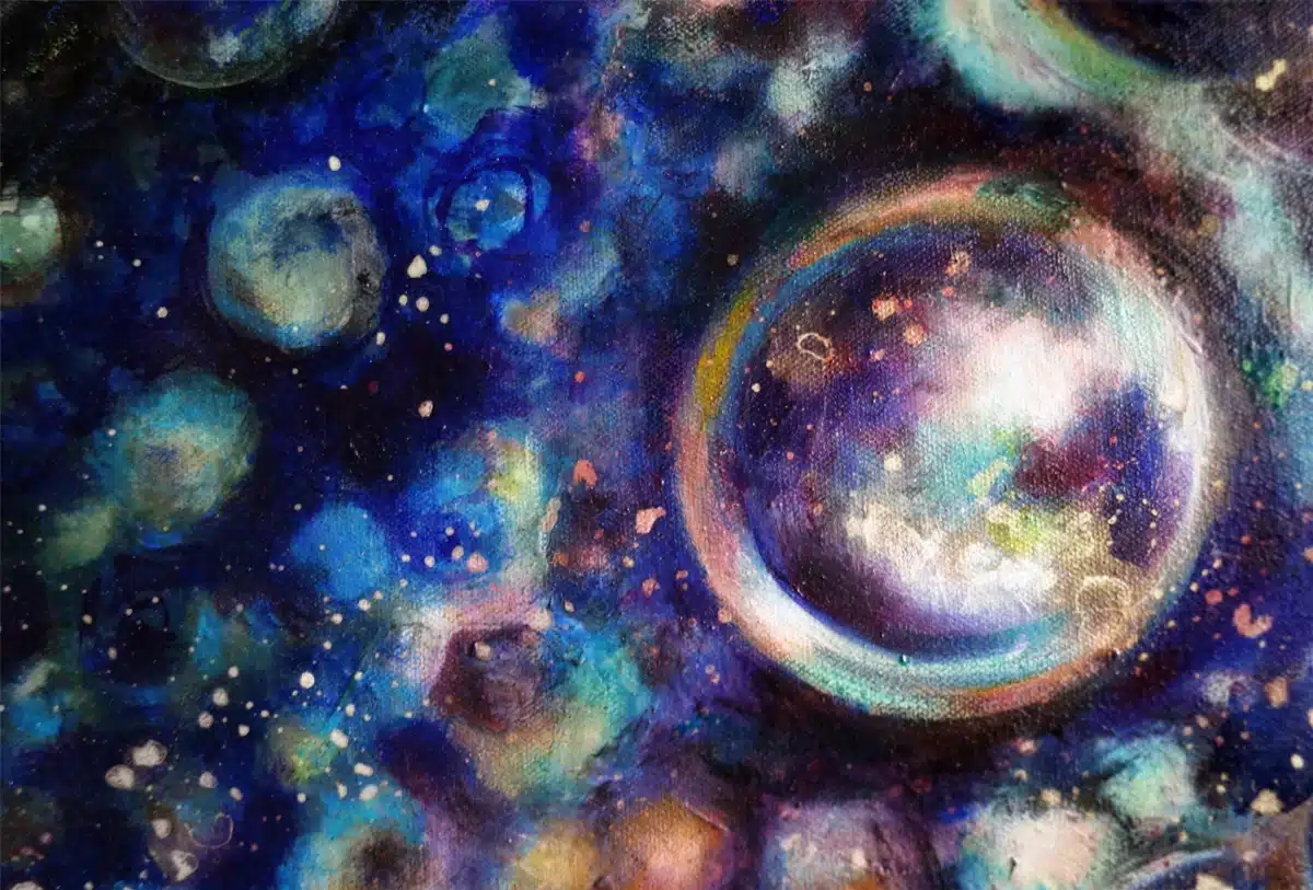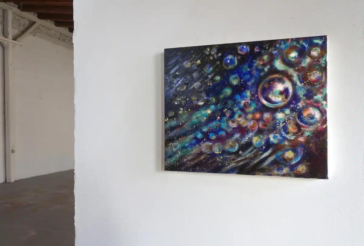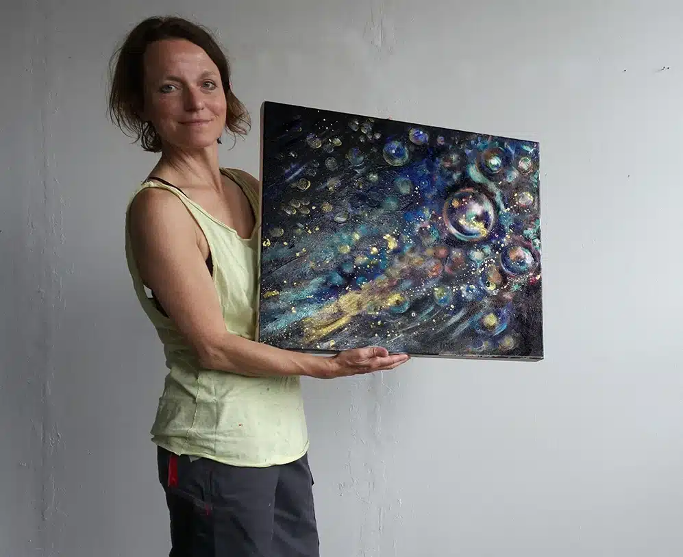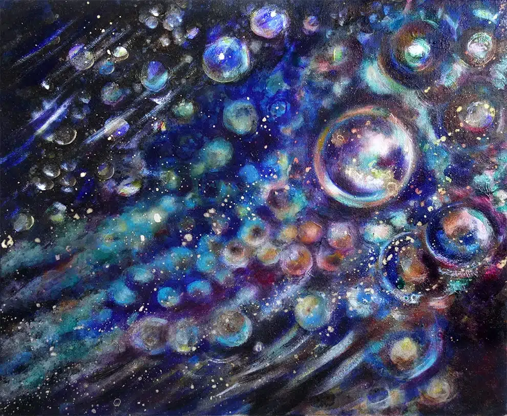 Ölfarbe, Schellack, irisierende Acrylfarbe auf Leinwand