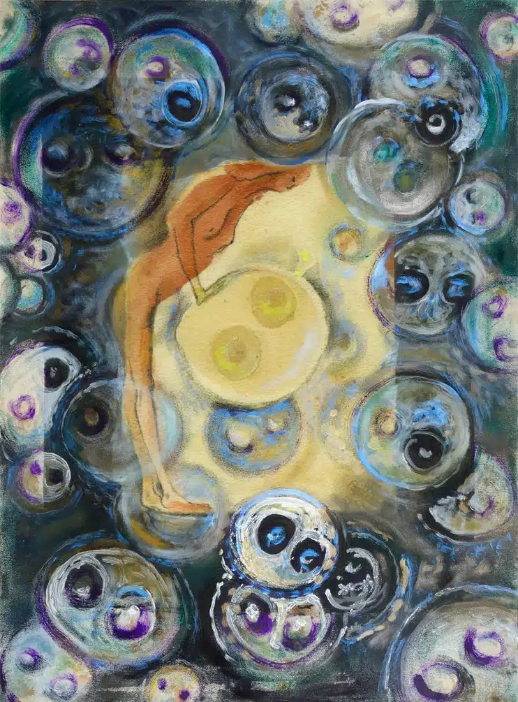 Kunstdruck von der Künstlerin bemalt, ungerahmt