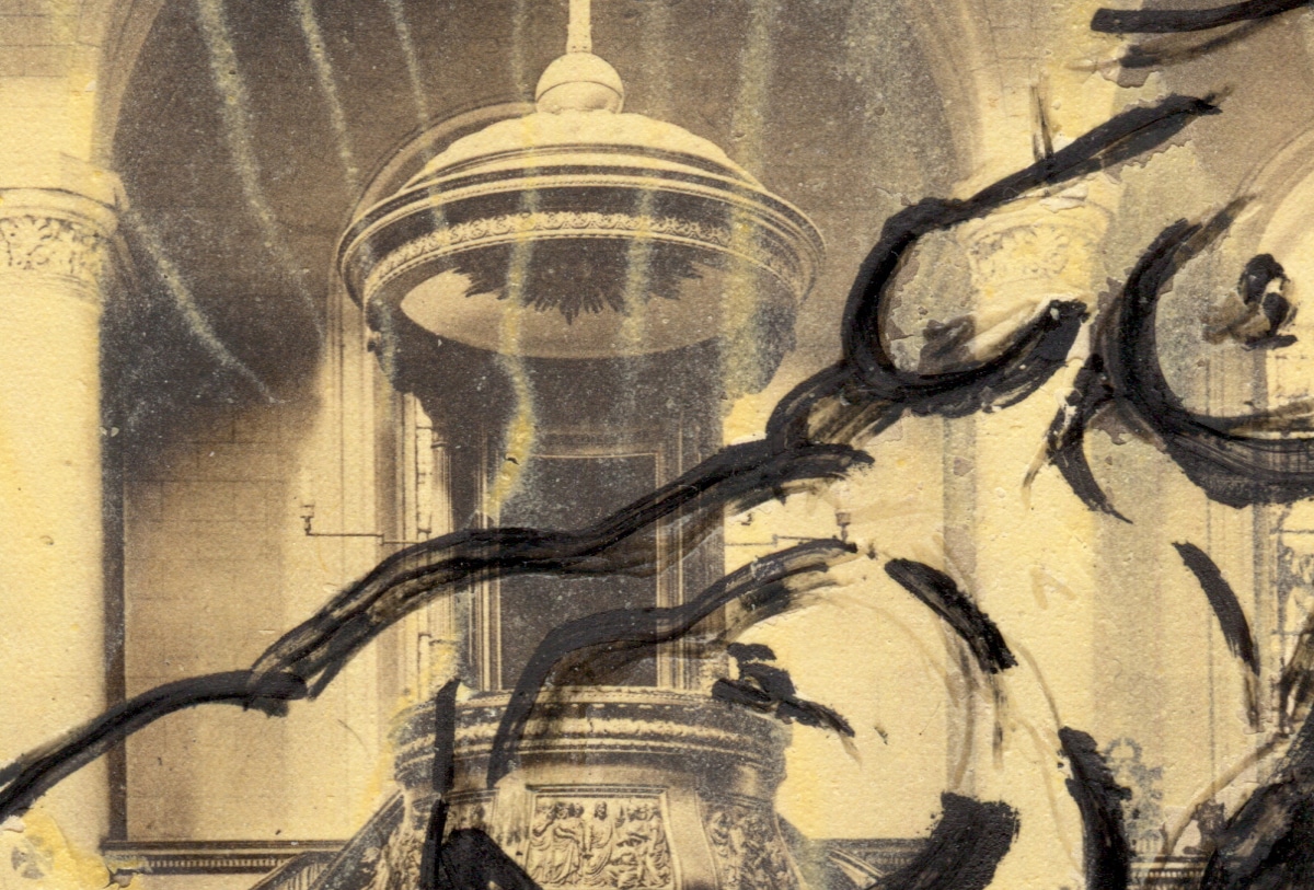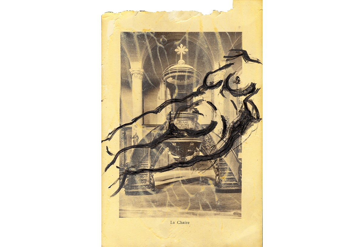 Original-Zeichnung auf ausgerissener Buchseite 23,5 x 15,2 cm, 1993, Tusche, Wachs