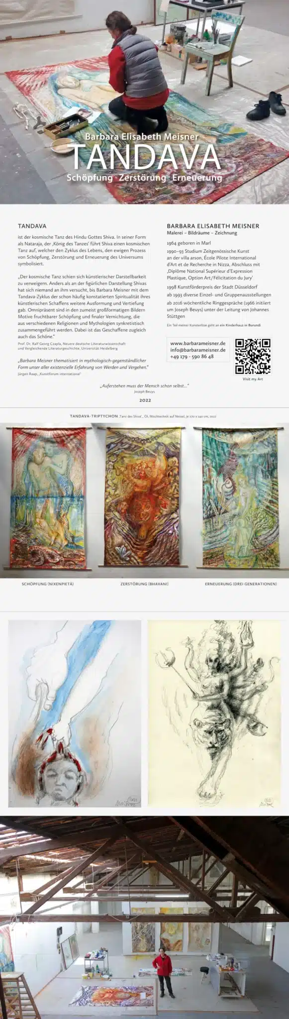 „Der kosmische Tanz schien sich künstlerischer Darstellbarkeit zu verweigern. Anders als an der figürlichen Darstellung Shivas hat sich niemand an ihm versucht, bis Barbara Meisner mit dem Tandava-Zyklus der schon häufig konstatierten Spiritualität ihres künstlerischen Schaffens weitere Ausformung und Vertiefung gab. Omnipräsent sind in den zumeist groß formatigen Bildern Motive fruchtbarer Schöpfung und finaler Vernichtung, die aus verschiedenen Religionen und Mythologien synkretistisch zusammengeführt werden. Dabei ist das Geschaffene zugleich auch das Schöne.“