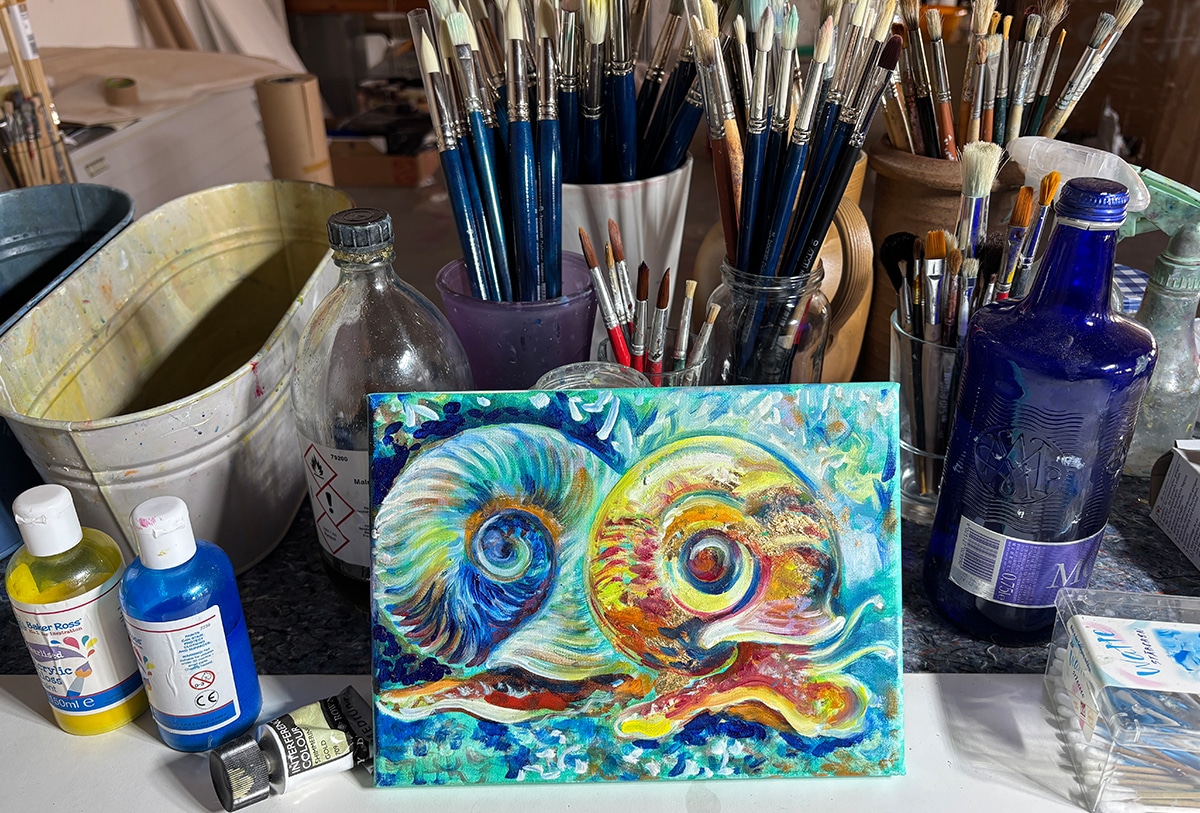 Original-Ölbild 18 x 24 cm, 2025, Ölfarbe, irisierende Acrylfarbe, Schellack, Glitter auf Leinwand