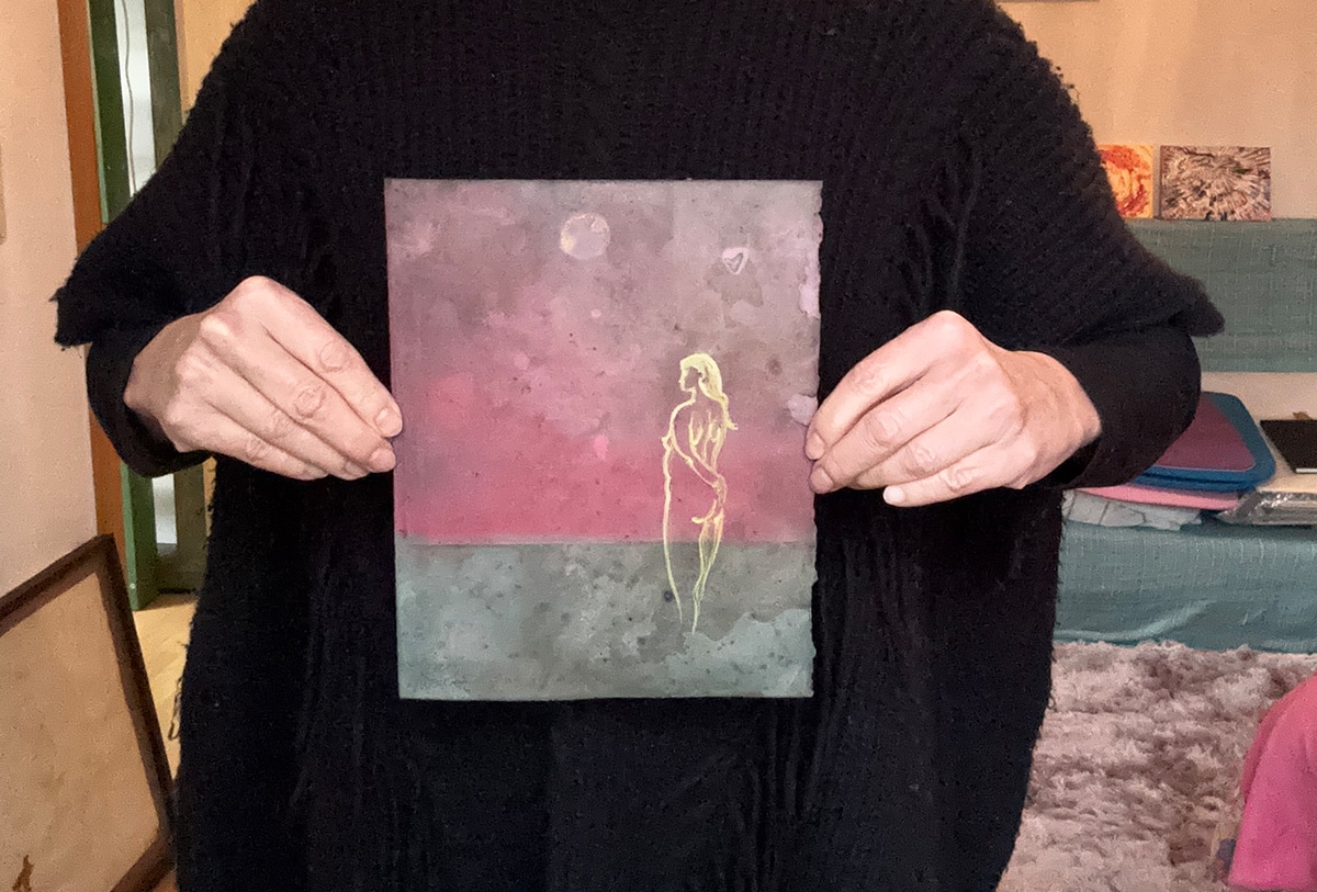 Das Unikat ist auf der Rückseite datiert und signiert (ungerahmt). Verpackung und Versand mit Sendungsnummer, Inland pauschal 10 Euro oder kostenlos bei Abholung im Atelier.