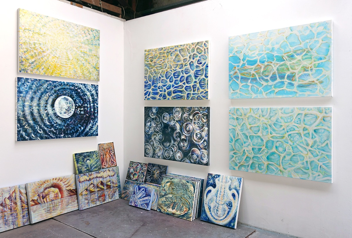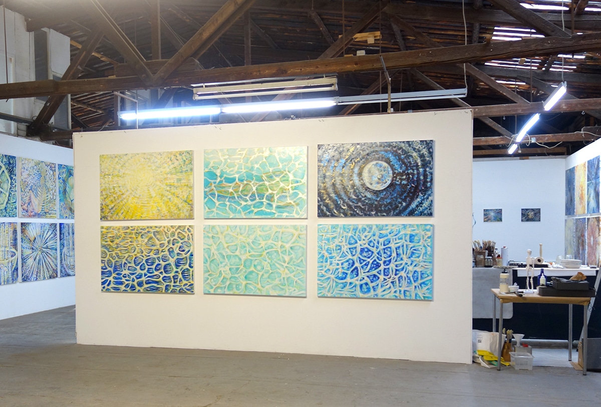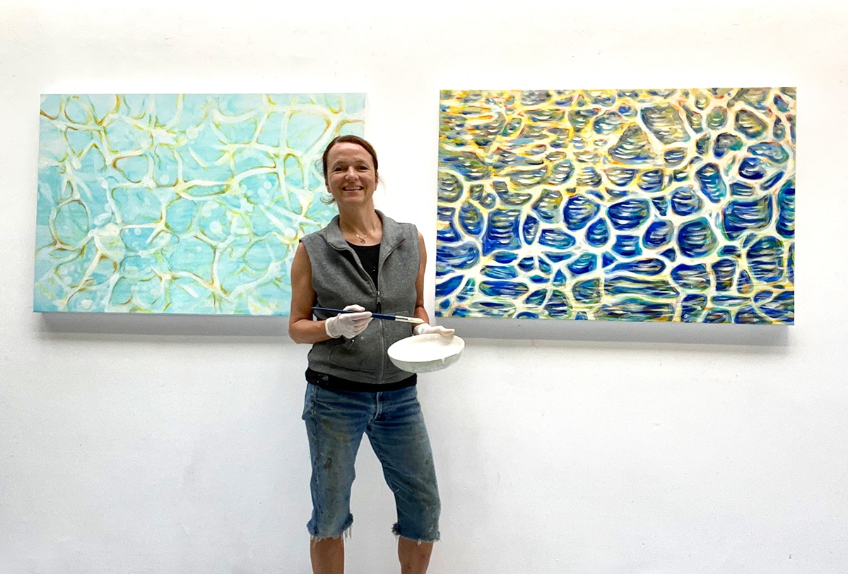 Auf Wunsch male ich für dich eine neue, eigenständige Interpretation des Werks COSMIC SWIMMER – WASSERREFLEXIONEN (TÜRKIS). Denn die Werkgruppe COSMIC SWIMMER besteht aus sechs Werken, die sich aufeinander beziehen und bleibt deshalb in ihrer ursprünglichen Zusammenstellung erhalten. Die sechs Original-Ölbilder werden ausschließlich als Einheit abgegeben.