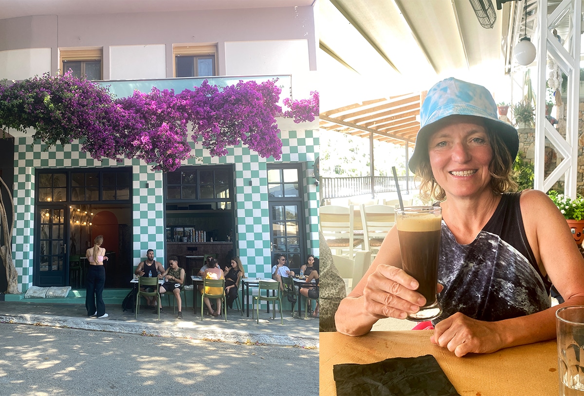 Schaffst du es, das Schöne zu entdecken – auch wenn die Umstände alles andere als schön sind? Da stand ich nun in der Nachmittagsglut Griechenlands an einer staubigen Hauptstraße, sah eine Futterstelle für wilde Katzen – sie starrten mich mit weit aufgerissen Augen an. Ein sehr schmaler Pfad führte zu einem Olivenhain und ich machte aus der Not eine Tugend und malte diese silbrig funkelnden Bäume: MAGIC GREEK OLIVE TREES. Das war doch mal ein richtig schönes Mittelmeermotiv! Versöhnter ging ich zurück zur Hauptstraße, versuchte mein Glück erneut mit Trampen und die Autofahrerin, die tatsächlich hielt, war eine ältere Britin, die mit ihrem Mann ein Haus auf der Insel besitzt und so dem englischen Wetter entfliehen kann. Das ist ja immer ein zweischneidiges Schwert, wenn Naturparadiese von nicht Einheimischen aufgekauft werden. Aber das gute Wetter und die Schönheit der Natur ist in Alonnisos eben das, wofür bezahlt wird. Wir ja schließlich auch!