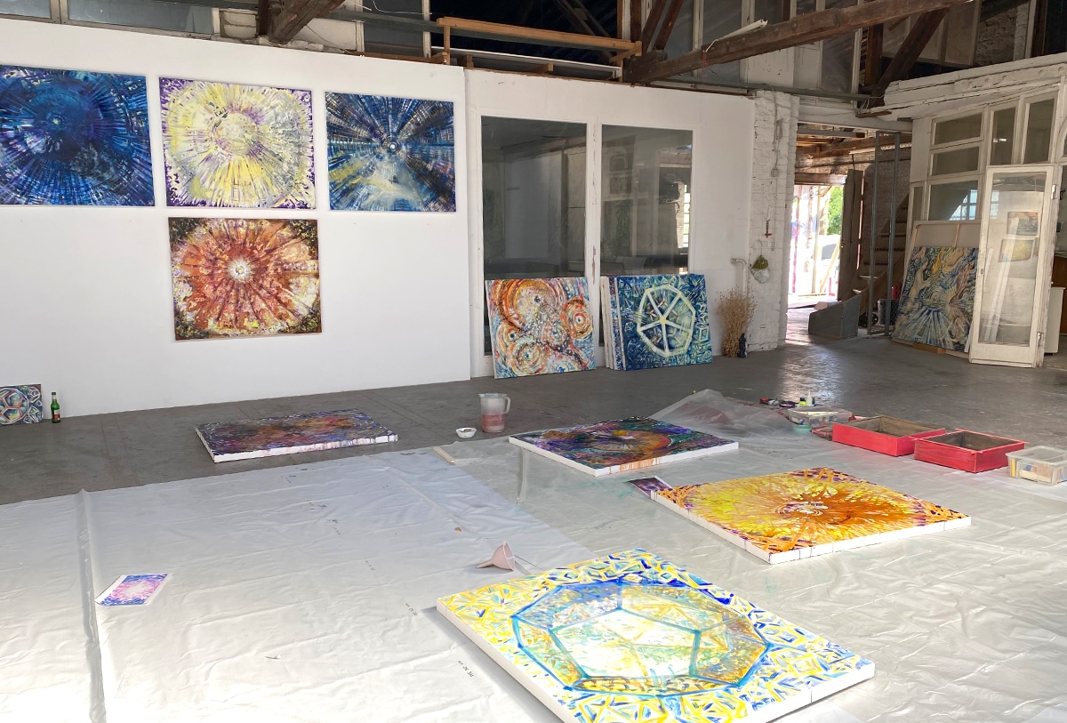 Vieles entsteht bei meinen Malprozessen intuitiv, ich weiß in dem Moment einfach, was fehlt und welche Farben und Materialien ich nehmen muss. Das ist einerseits Erfahrung, anderseits Hingabe an die Führung der göttlichen Quelle.