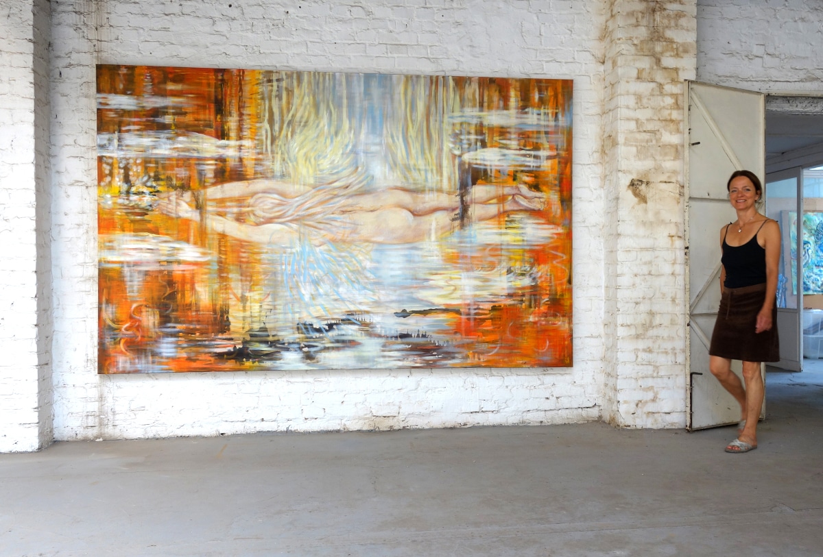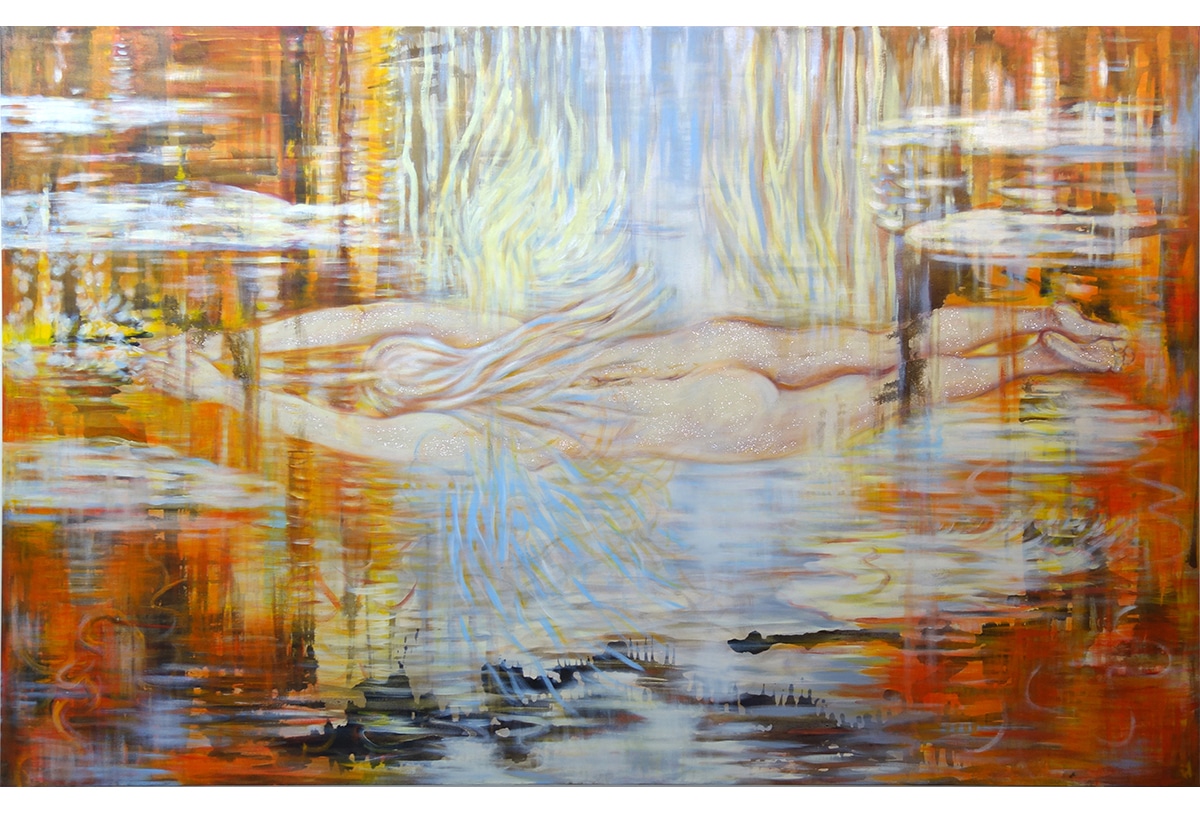 „Weil Meisners Bilder als Einladungen formuliert sind, sind sie sofort zugänglich. Der ‚naive‘, nicht künstlerisch gebildete Blick ‚versteht‘ auf Anhieb, worum es geht. Die intuitive Leseart ist oft die richtige: Eine nackte, weibliche, langhaarige Gestalt im Rückenansicht streckt ihren Körper in die gesamte Breite des Bildes und dringt durch Farbschleier hindurch (das Ölgemälde EINTAUCHEN von 2023).