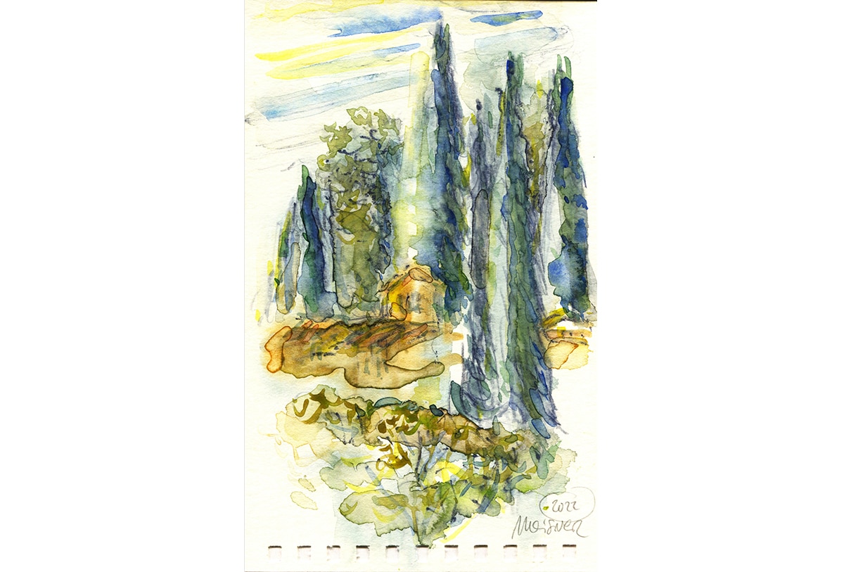 Original-Aquarell auf Aquarellpapier, 15 x 25 cm, Toscana Mai 2022