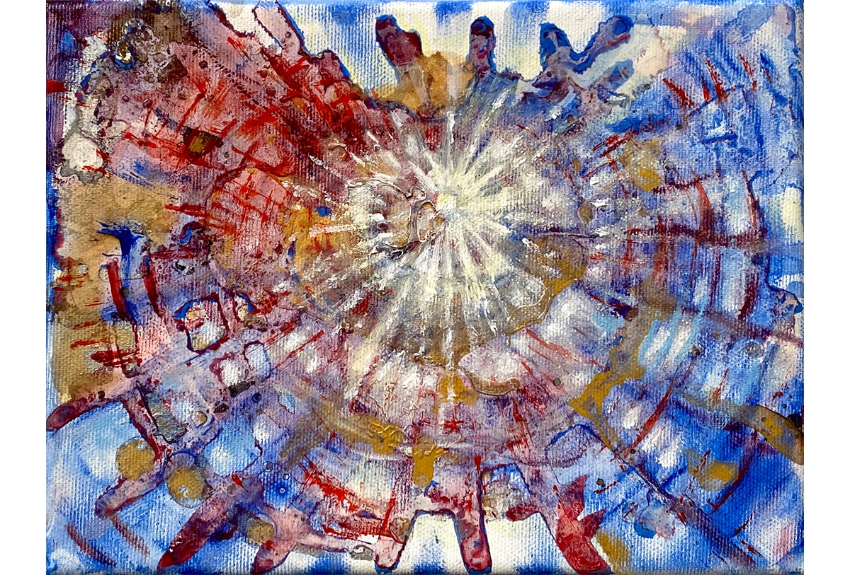 Original-Ölbild 18 x 24 cm, Ölfarben, Schellack, Walnuss-Sud, Schlagmetall oder Blattgold, Blattsilber, Glitter auf Leinwand