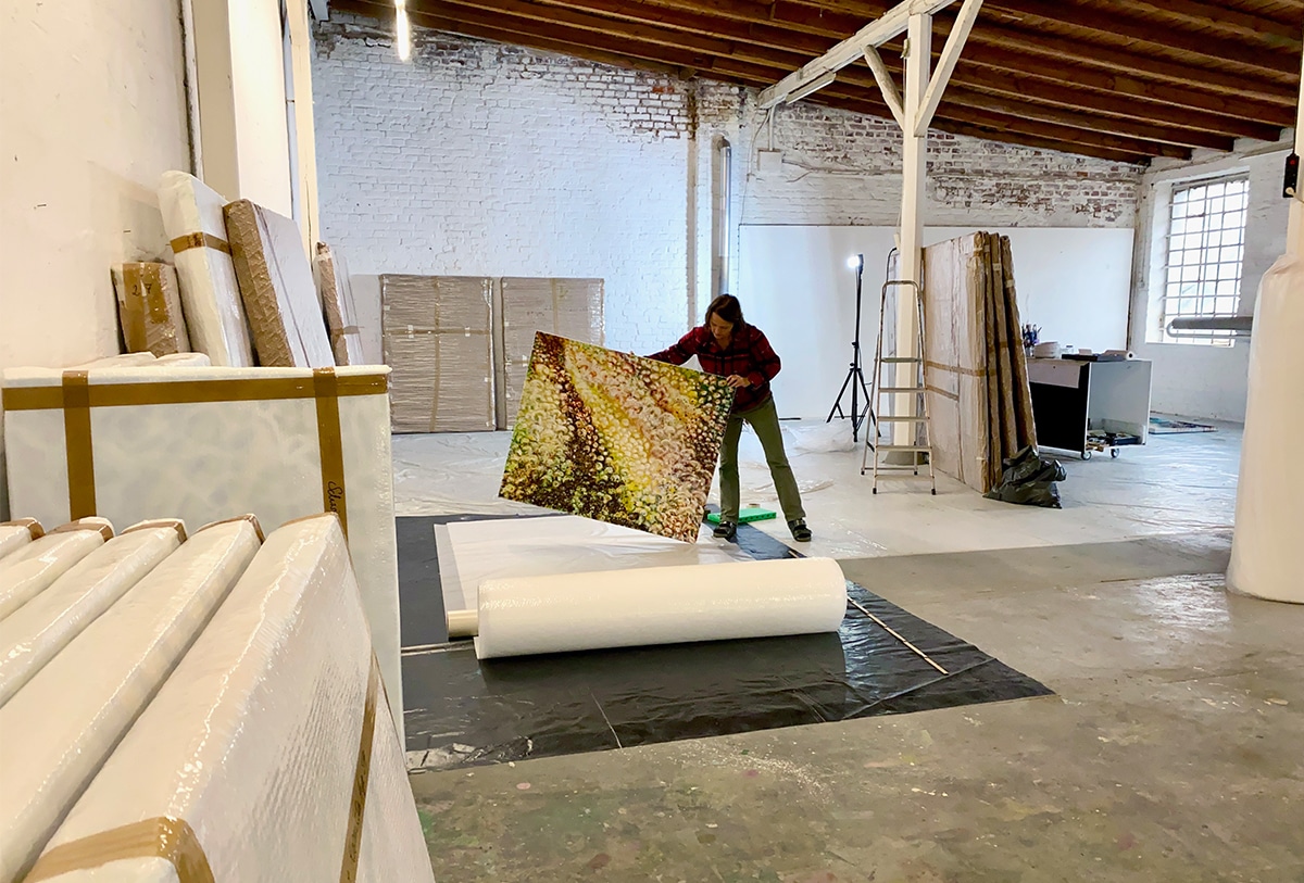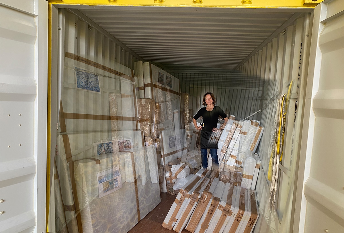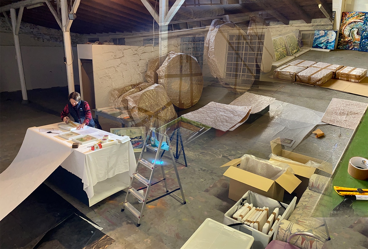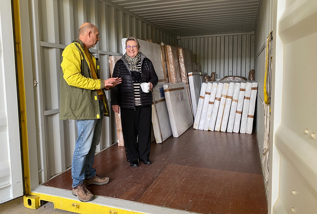 Ich kontaktierte sie als ich im Herbst 2024 dringend ein Lager für meine Kunstwerke suchte, weil sich meine Ateliersituation verändert hatte. Petra Aschendorf führt mit Mann und Sohn ein riesiges Containerlager in Neuss-Holzheim. Ausgerechnet dort, in Neuss-Holzheim – genauer Eppinghoven, hatte ich mit 30 Jahren nach meinem Kunststudium in Nizza mein erstes Atelier im Rheinland – im Keller des Landhandel Bommers an der Erft – mit Blick auf die Museumsinsel Hombroich. Petra Aschendorf besuchte mich davor in meinen damaligen Atelierräumen, um einen Eindruck zu gewinnen, welche Containergröße nötig sei. Normalerweise, sagte sie, seien alle Container ständig belegt. Und ich sage nur: Gottes Fügung und Führung 😉