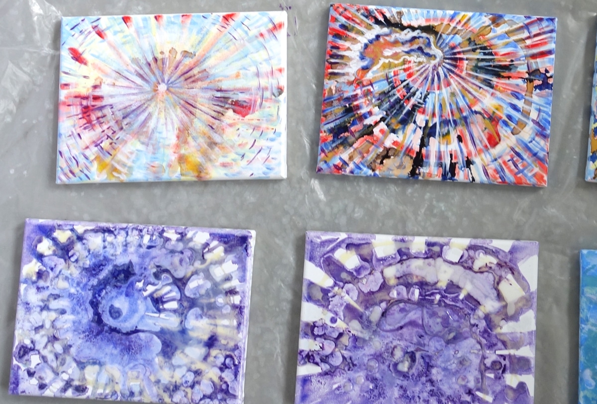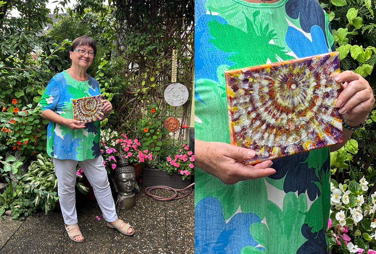 Ich lernte sie 2023 während meiner großen Scheunenausstellung zu Ehren meines Vaters im fränkischen Dorf Weißenbrunn kennen. Von Anfang an war sie tief berührt von meinen Werken – und inzwischen lebt bereits eine kleine Sammlung davon in ihrem Wohnzimmer.