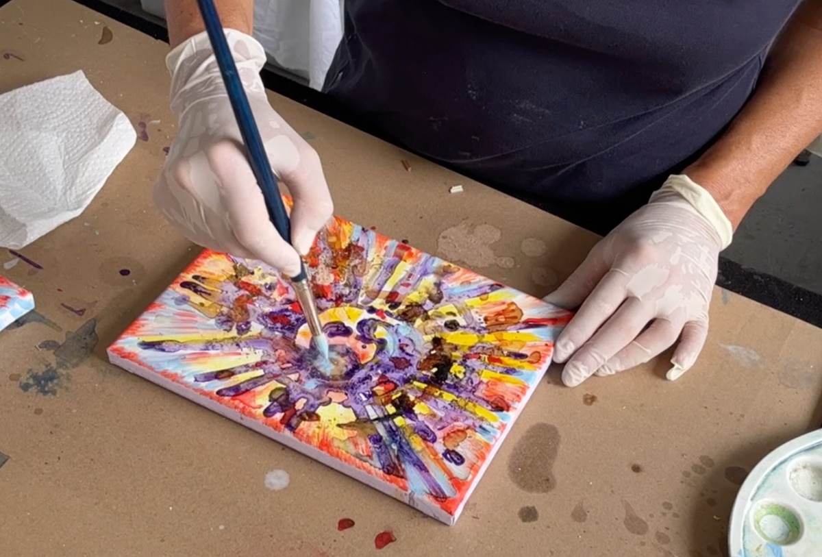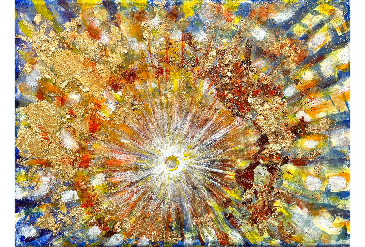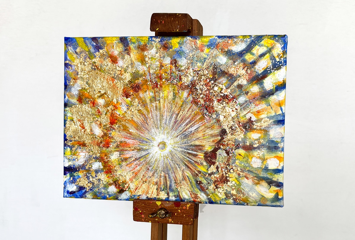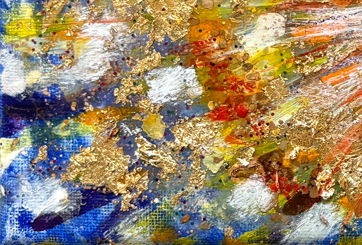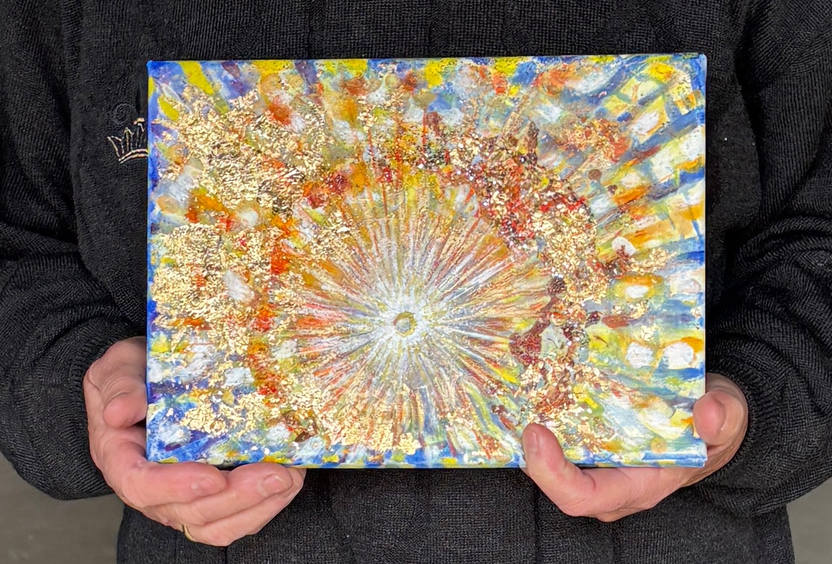 Original-Ölbild 18 x 24 cm, Ölfarben, Schellack, Walnuss-Sud, Schlagmetall oder Blattgold, Blattsilber, Glitter auf Leinwand