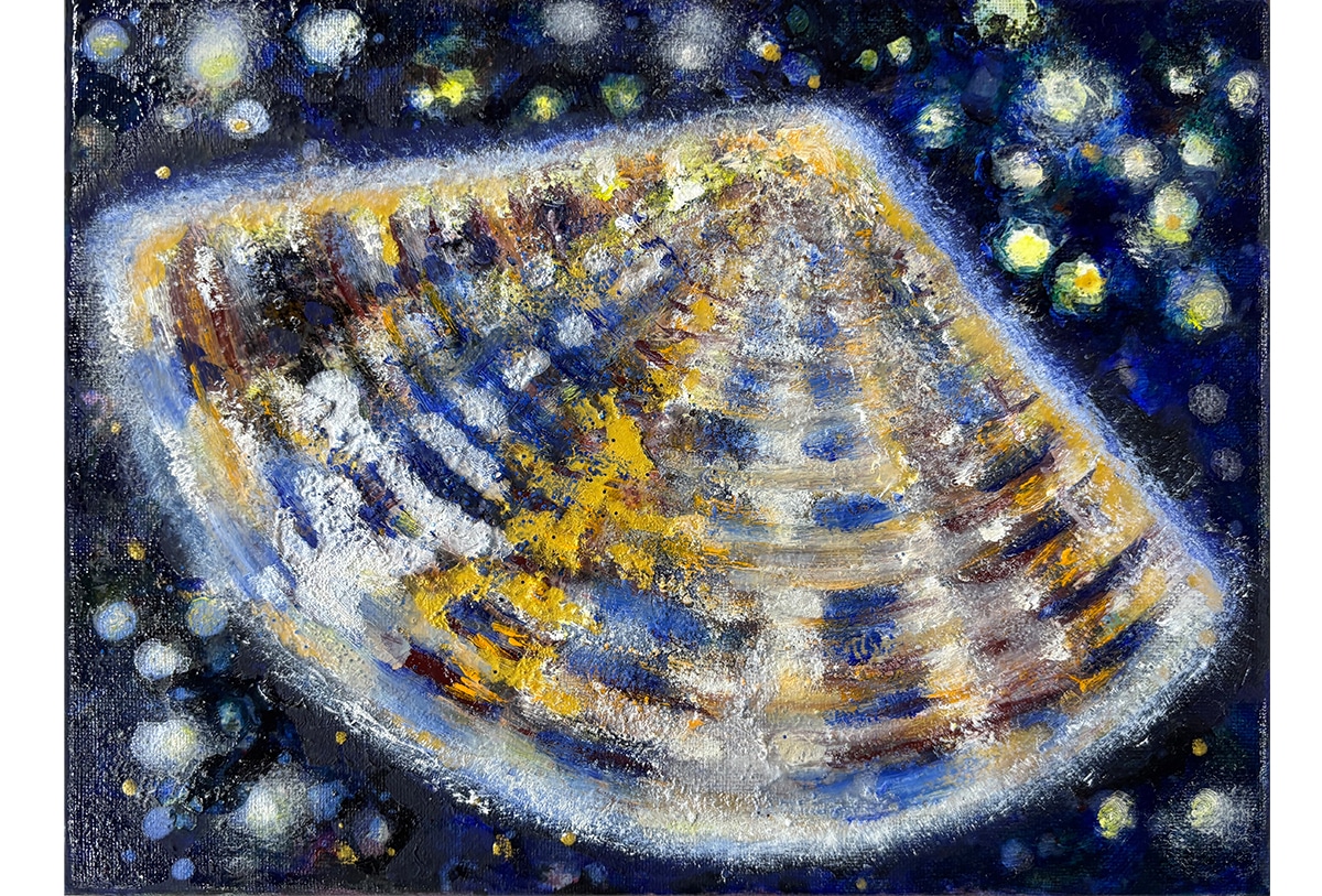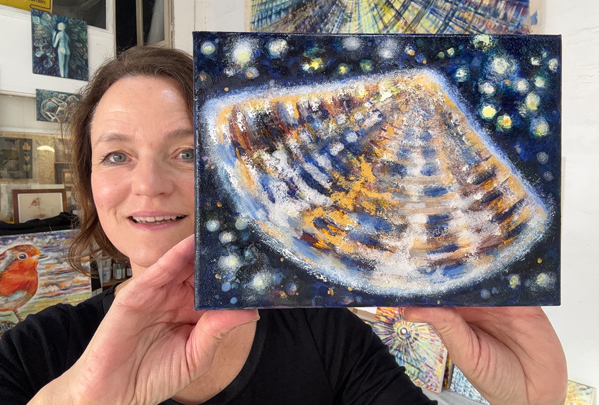 Original-Ölbild 18 x 24 cm, 2025, Ölfarbe, irisierende Acrylfarbe, Schellack, Glitter auf Leinwand