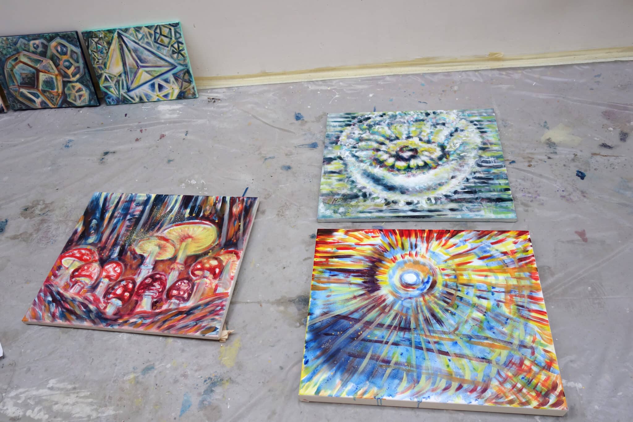 Original-Ölbild 50 x 60 cm, 2023, Ölfarbe, irisierende Acrylfarben, Walnuss-Sud, Glitter auf Leinwand