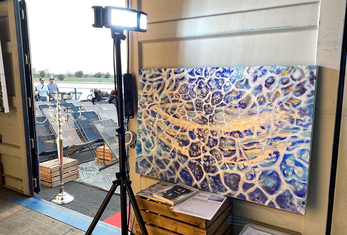 Original-Ölbild 80 x 120 x 4,5 cm, 2024, Ölfarbe, irisierende Acrylfarbe, Schellack auf Leinwand