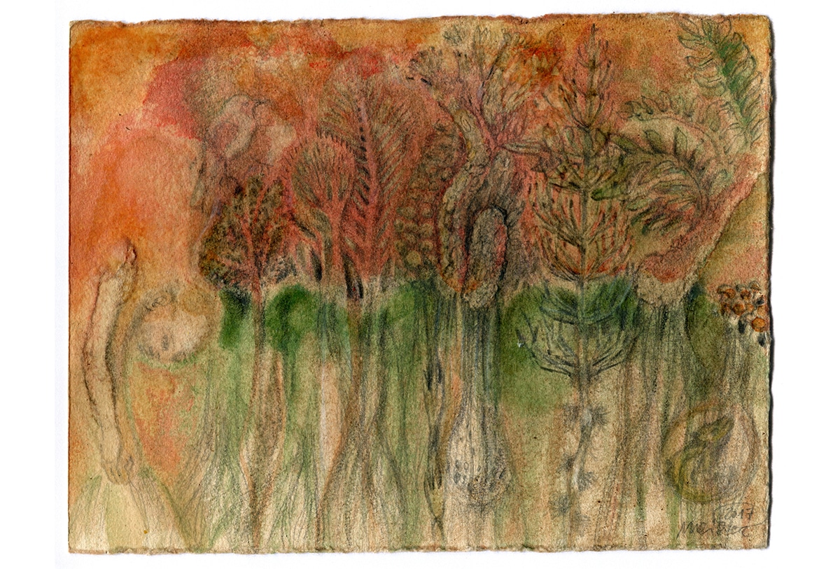 Original-Zeichnung 24 x 18 cm, 2017, Graphitstift, Aquarellstift, Acrylfarbe, transparenter Lack auf präpariertem Büttenpapier